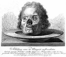 A line engraving of the preserved head of a syphilitic sex worker who died in 1796 with osteolytic lesions typically seen in the highly contagious second stage of syphilis. (Wikimedia).
