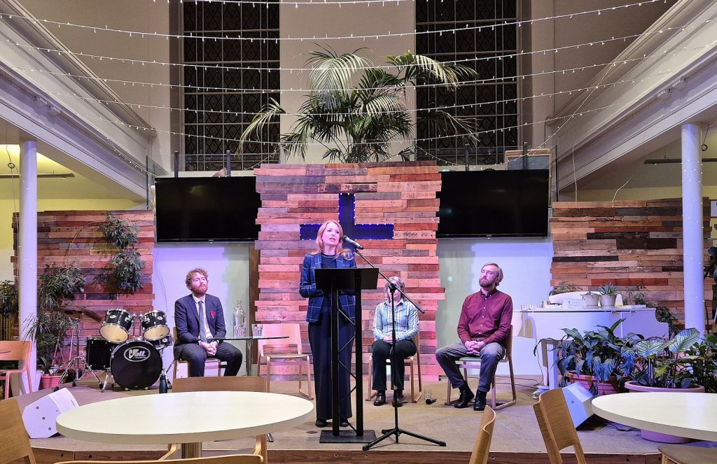 Left to Right: Chris Ringland (Evangelical Alliance), MSP Ash Regan, Karen Miller (Restore Glasgow) and Stuart Weir (Christian, Action, Research and Education (CARE). Photograph: Garry Otton.