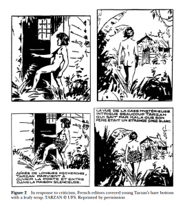There were plenty of other casualties of the Book Board. Tarzan, a muscular, half-clothed, bestial and poorly educated boy from the jungle was soon a victim and his comics either banned or prudishly re-illustrated. While American imports, Tarzan and Flash Gordon perished in the cartoon cull, Tintin, Lucky Luke and Les Stroumpfs (The Smurfs) triumphed over the censors. The Board put pressure on comic publishers to paint-out the busts of shapely females and cover any scantily-clothed seductresses. Pihan published his own Catholic comic books Coeurs Vaillants and Âmes Vaillantes. (Brave Hearts and Valiant Souls) whilst scorning the transgressive behaviour of female gender roles in other comics, such as a superwoman who fought against men. He deplored the absence of mothers and wives in comics which he regarded as particularly grave for girls.
