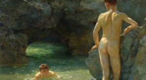 Gerard and Pierre’s love is so passionate that almost anything during this hot, sultry summer: the river, grass, trees and sky, shimmer and tremble in sympathy with their erotically-charged romance. “Legs spread, a tuft of pale yellow soapwort against his knees, Gerard slept. His half-opened shirt seemed to be a white wave breaking on the honey-coloured dome of his chest. My eyes followed the muscles of his throat toward the neckline of his collar. Their force seemed to emphasize the contrasting softness of the shadows near his shoulder.” All the same, an emerging darker side resonates against this beautiful backdrop as the author blends pain and beauty on the same palette.